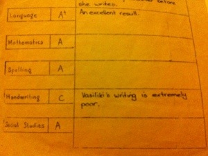In third grade, my report card was filled with As with the exception of C for my handwriting.This C did not change all the way through to sixth grade.