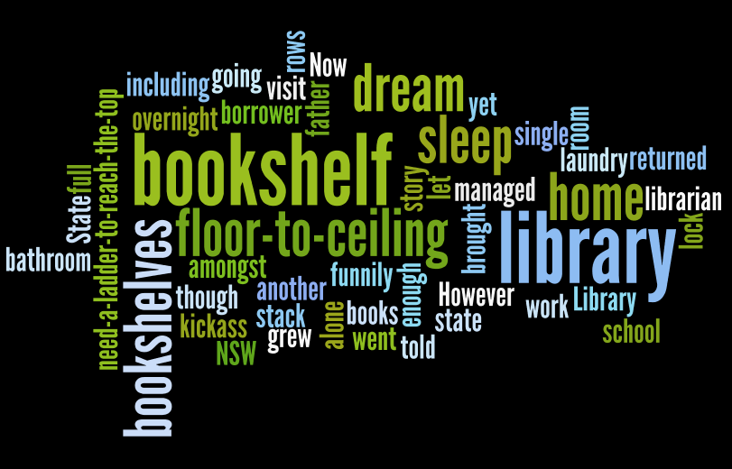 However, my own bookshelves, I would never call Bookshelfporn. I have a relationship with my bookshelves, they have served me as I have served them. I have run my hand along my rows of books, gently fingering their spines, lovingly turning their pages, hearing their words whispered in my ears. These wonderful, hard, timber shelves hold up my books that I have chosen to keep close forever, positioning them for my pleasure, my exultation in their words and my revelling in the fortune that they are mine.